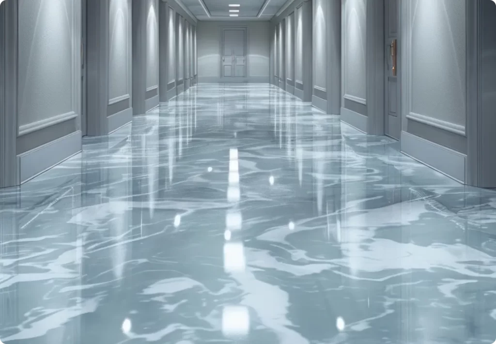 Metallic epoxy flooring is the ideal choice for businesses looking to add both style and durability to their space. With a high-gloss, reflective finish, and customizable color blends, it creates a striking, modern look that enhances any environment, from showrooms to offices.
